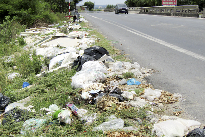 Tại đầu cầu Nam Đồng Bà Thìn, huyện Cam Lâm một số người dân thiếu ý thức đổ rác bừa bãi ra hành lang an toàn nơi đầu cầu gây mất vệ sinh môi trường, mỹ quan.