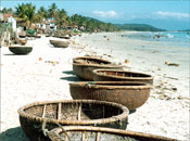Trên bãi biển dài hơn hai cây số của thôn Ngân Hà, thuộc xã Ninh Thủy, huyện Ninh Hòa là một bãi thuyền thúng. Những chiếc thuyền thúng nối đuôi nhau nghiêng đón nắng trên bãi biển khiến cho cảnh sắc nơi đây rất lạ.