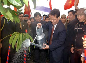 | Chủ tịch nước Trần Đức Lương trồng cây tại khu di tích lịch sử văn hoá Côn Sơn - Kiếp Bạc, huyện Chí Linh (Hải Dương). |