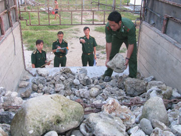| Một vụ khai thác, vận chuyển san hô trái phép bị Bộ đội Biên phòng tỉnh phát hiện thu giữ. |
