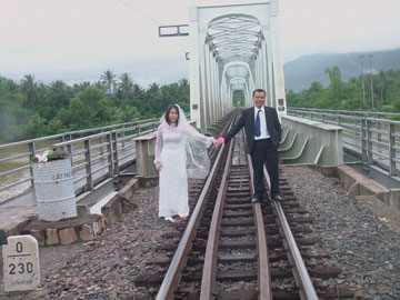 Đến cầu sắt, mới chụp được mấy kiểu cô dâu chú rể nắm tay dìu nhau đi thì một anh bảo vệ cầu xuất hiện: “Ai cho phép anh chị chụp ảnh ở đây? Yêu cầu đi xuống để bảo đảm an toàn đường sắt!”. Theo anh thợ chụp ảnh thì do số đôi tình nhân đến đây chụp nhiều nên anh bảo vệ rất ngại, nhưng đây là điểm đỉnh để hai người cùng dắt tay nhau trên con đường sắt song song, phối cảnh rất đẹp; anh thợ kết luận: “Trong album ảnh không thể bỏ qua cảnh này”.