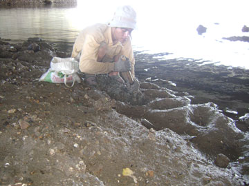 Để mò được những con sò, con phi… dưới đáy sông, nhiều người phải thức dậy từ lúc gà gáy. Bãi mò này có người già, trẻ em, thanh niên… và cả những học sinh tranh thủ nghỉ chủ nhật ra đây đi mò kiếm thêm giúp đỡ gia đình. Anh Lê Thành Trung, ở Ô 21 Lô 1049 Hòn Rớ - người có “thâm niên” mò sò trên bãi cạn tâm sự: “Hai vợ chồng tôi có một đứa con nhưng lại bị dị tật não bẩm sinh. Thường ngày, vợ tôi phải ở nhà chăm sóc con, một mình tôi ra đây mò sò về bán, kiếm tiền mua gạo, còn lại chắt chiu dành dụm để mua thuốc cho con”. Vừa bước lên bờ, chân tay còn run lên vì lạnh, anh Phụng ở Lô 9 Ô 272 Hòn Rớ tâm sự: “Cuộc đời của vợ chồng tôi dường như đã an bài ở dòng sông này. 4 đứa con tôi đều phải bỏ học từ lớp 2, lớp 3. Mỗi ngày đi mò thế này, vợ chồng tôi cũng chỉ kiếm được đủ ăn. Gần 60 tuổi rồi, không còn khỏe nữa nên chúng tôi không theo kịp người trẻ”. Trông em Lê Thành Quang, học sinh lớp 7/1 Trường Trung học Cơ sở Lê Thanh Liêm (xã Phước Đồng) mới tội nghiệp. Mò mẫm, lặn lội cả ngày trên sông nhưng em chỉ có duy nhất bộ quần áo cộc đơn sơ. Lên bờ, không có quần áo ấm thay, thỉnh thoảng, em lại run vì gió lạnh. Em cho biết: “Ngoài giờ đi học, em tranh thủ chủ nhật ra đây phụ giúp bố mẹ kiếm tiền mua sách vở, quần áo”. Bình quân 1kg sò có giá 4 ngàn đồng, 1kg phi 15 ngàn đồng, 1kg con giá 12 ngàn đồng. Người khỏe mạnh, một ngày có thể kiếm được hơn 60 ngàn đồng. Mò được con gì là đem bán cho các nhà buôn. Những người này sẽ đem đến Cam Ranh, Ninh Hòa… bán lại cho bà con làm thức ăn cho tôm hùm.
