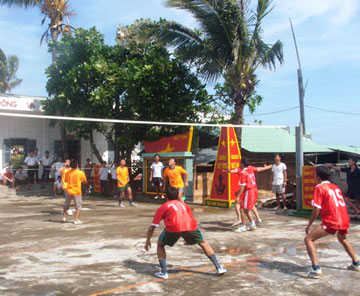 Đang ngồi giải lao dưới gốc cây phong ba sau khi tập xà đơn, binh nhất Nguyễn Đông Vũ (quê ở xã Phước Đồng - T.P Nha Trang) tâm sự: “Sau giờ huấn luyện, lính đảo chúng tôi rất thích chơi thể thao, vì thể thao không chỉ để rèn luyện sức khỏe mà còn giúp chúng tôi vơi đi phần nào nỗi nhớ nhà, nhớ đất liền”. Được biết hiện nay, điều kiện liên lạc giữa các chiến sĩ với gia đình và bạn bè nơi đất liền đã dễ dàng; bởi những năm trở lại đây, sóng điện thoại di động đã phủ khắp các đảo. Thế nhưng, nhiều khi ngồi nghĩ về đất liền, họ lại cảm thấy buồn vì nhớ gia đình, bạn bè. Mỗi lần như thế, họ lại vào sân chơi vài séc bóng chuyền hay vài ván cờ tướng… Người ngoài cổ vũ, người chơi trong sân rất nhiệt tình. Trong mỗi buổi chơi thể thao, các anh thay người liên tục, vì sân ít nhưng người tham gia lại đông. Cứ thế, nỗi buồn tan theo những pha bóng đẹp hoặc những nước cờ hay.