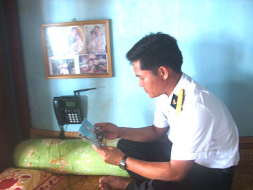Đến với Trường Sa, không khó để bắt gặp những góc giường, góc phòng của CBCS nơi đây treo những bức ảnh gia đình, ảnh cưới, ảnh các con lúc tập bò, tập tễnh bước đi, những bức thư của người vợ yêu quý của họ gửi từ đất liền ra kể về chuyện nhà, chuyện con cái. Ngày chúng tôi đến đảo Tốc Tan A, sau khi quà Tết đã được chuyển lên đảo an toàn, các CBCS trên đảo lại quây lấy đồng chí Chính trị viên để nhận thư từ đất liền gửi ra. Cũng như nhiều anh em khác, Thiếu úy Trần Thế Sơn quê ở Thái Bình, ra đảo nhận nhiệm vụ từ tháng 1-2009. Tuy việc liên lạc giữa đảo với đất liền không còn khó khăn như trước, nhưng mỗi lần tàu cập đảo, anh lại thấp thỏm mong nhận được những tấm hình của con trai Trần Tiến Thành chỉ mới 5 tuổi. Anh Sơn tâm sự: “Từ ngày sinh con đến giờ, tôi chỉ mới ở cùng cháu được vài tháng ít ỏi; mọi việc ở nhà đều trông cả vào vợ và ông bà nội, ngoại”.