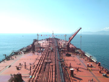 | Cty Xăng dầu Phú Khánh luôn chú trọng công tác an toàn - vệ sinh lao động - phòng chống cháy nổ khi trung chuyển dầu trên vịnh Vân Phong. |