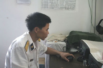 | Chiến sĩ đảo Đá Thị kiểm tra thông tin quanh khu vực đảo |