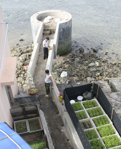 | Tuy là đảo chìm, nhưng vườn rau của các chiến sĩ trên đảo vẫn xanh mướt. |