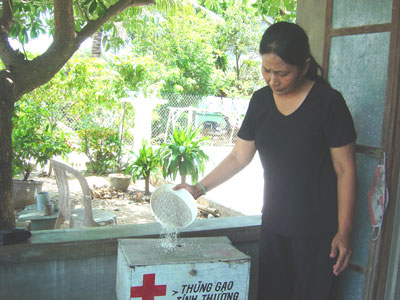 | Những việc làm tuy nhỏ nhưng gần gũi với đời thường đã giúp chị em thấy được ý nghĩa thiết thực của cuộc vận động.Trong ảnh: Tiết kiệm gạo giúp những người có hoàn cảnh khó khăn. |