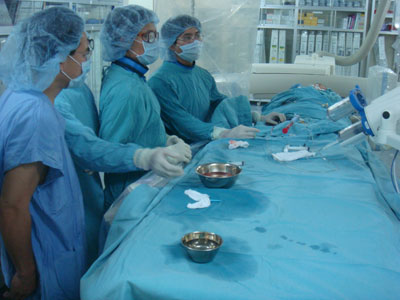 | Một ca can thiệp nong mạch vành tại Bệnh viện Đa khoa tỉnh. |