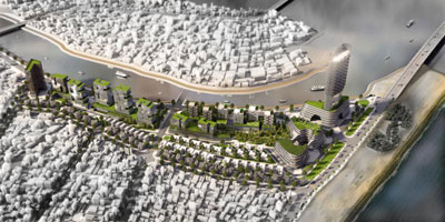 Không gian của khu đô thị (KĐT) được bố cục dọc theo bờ sông Cái bằng hình thức xen kẽ giữa các khu chức năng nhằm đạt được sự thuận tiện tối đa về giao thông và thông thoáng về khí hậu. Phương án kiến trúc nhấn mạnh tuyến giao thông Bắc - Nam để nối liền trung tâm thành phố và bờ sông Cái. Dựa vào địa hình, vị trí và hình dạng khu đất dự án, tại đây sẽ xây dựng một KĐT xanh, toàn bộ diện tích dự án được phân chia thành các lô đất có hình dạng ngẫu hứng và tự nhiên theo dạng đường cong, giữa các lô đất là đường giao thông nội bộ. Ý tưởng chủ đạo của dự án nhằm tạo nên hình thái quy hoạch như một “quần đảo” bao gồm các đảo nhỏ là những lô đất với không gian chức năng khác nhau. Các tòa nhà chung cư có thiết kế tạo ra những hình khối, vườn ban công cong, độ cao thay đổi từ 9 đến 21 tầng phía 2 đầu thấp và cao dần lên ở chính giữa tạo thành một đường cong tự nhiên khi nhìn từ sông Cái. Giữa các khối đế cũng như khối tháp của các chung cư này đều có khoảng cách lớn để đón gió từ ngoài sông vào trong dự án và thành phố. Các khu biệt thự được đặt sâu vào phía trong tạo không gian yên tĩnh, riêng biệt. Trong đó, các căn hộ chung cư, biệt thự, diện tích sàn thương mại để bán. Bãi đỗ xe, tầng hầm cho thuê. KDC Cồn Tân Lập không có diện tích đất dành để xây dựng nhà ở xã hội.