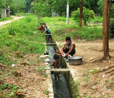 | Hiện nay, mương thủy lợi này là nơi cung cấp nước sinh hoạt cho nhiều hộ dân làng Suối Ốc. |