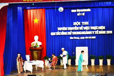 Với sự tham gia của 15 đội đến từ các cơ sở y tế huyện, thị xã, thành phố trong tỉnh Khánh Hòa, Hội thi “Tuyên truyền về thực hiện quy tắc ứng xử” trong ngành Y tế do Sở Y tế và Công đoàn ngành tổ chức đã mang lại cho người xem nhiều cung bậc cảm xúc. Đó có thể là những trận cười sảng khoái, sự kính trọng đối với những người thầy thuốc hết lòng vì người bệnh, hay sự giận dữ trước sự thờ ơ, vô cảm của cán bộ y tế (CBYT) đối với bệnh nhân (BN)…