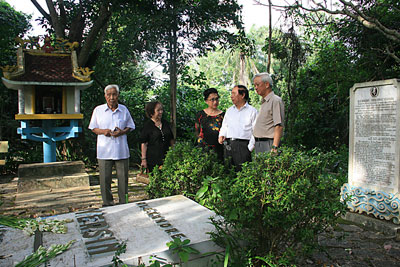 | Ông Nguyễn Chiến Thắng - Phó Bí thư Tỉnh ủy, Chủ tịch UBND tỉnh Khánh Hòa (bên phải) cùng thành viên của các đơn vị liên quan khảo sát hiện trạng Khu di tích mộ bác sĩ A.Yersin. |