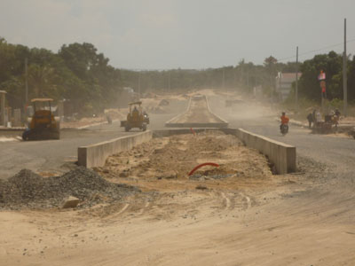 | Cam Lâm quan tâm đầu tư cơ sở hạ tầng ĐT (Trong ảnh: Tuyến đường Cam Hải Đông - Tây nối thị trấn Cam Đức với Bãi Dài đang được thi công. |