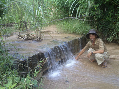 Bám theo chiếc xe cọc cạch nhưng làm ra “khối” tiền của ông, tôi theo đến tận chân đất rẫy. Một trang trại “gập ghềnh” hiện ra bên con đường nhỏ bạt ngàn màu xanh của mía, mì, đào. Vừa đi ông vừa kể câu chuyện những ngày đầu gian nan lên khai phá vùng đất này. Tuy là đất mua nhưng có địa hình gập ghềnh, đồi dốc, đá núi gồ ghề, lởm chởm nhiều gốc cây. Ông đã phải đào lên từng gốc, lật tung từng bụi thật khó nhọc bằng những dụng cụ thô sơ. Ông chỉ cho tôi thấy con suối nhỏ đã làm mình “điên đầu” mỗi khi mùa lũ về. Ông đã phải tốn bao công sức để “chế ngự” nó. “Nước từ con suối này mùa lũ rất dữ, làm xói mòn hết đất trồng, tôi phải đầu tư hơn 20 triệu đồng để xây bờ kè kiên cố, dài 3m, cao 2m. Từ đó, con suối bớt “dữ” - ông nói.