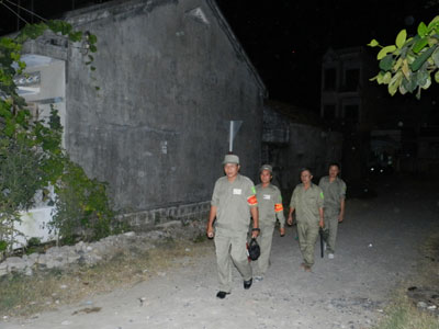 Chờ đồng chí Hảo - Cảnh sát khu vực phổ biến xong, tuyên bố xuất phát, tôi tranh thủ đi cạnh hỏi chuyện đồng chí và được biết: Đây là hoạt động thường xuyên của Ban BVDP. Phường có 15 tổ dân phố thì cũng có 15 Tổ BVDP đảm trách tuần tra giữ gìn ANTT trên địa bàn. Tổ BVDP 6, Hòa Nam có 5 thành viên thì cả 5 đều là quân nhân đã nghỉ hưu, xuất ngũ. Trong đó, người cao tuổi nhất là anh Đức đã gần 60. Tuy nhiên, các anh đều tự nguyện tham gia công việc. Hàng đêm, các anh có 1 ca tuần tra dài 3 giờ, thời điểm không cố định, trong khoảng từ 21 giờ ngày hôm trước đến 5 giờ sáng ngày hôm sau. Ngoài nhiệm vụ chính là tuần tra ban đêm, BVDP còn tham gia vào các công tác giữ gìn ANTT khác như: giữ gìn trật tự an toàn giao thông; giải tỏa lòng, lề đường; cưỡng chế đền bù, giải tỏa; xử lý những vụ việc gây mất ANTT trên địa bàn.