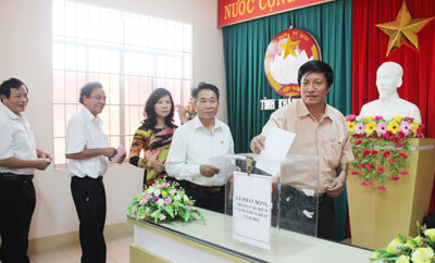 * Các đơn vị khối Mặt trận - Đoàn thể tỉnh Khánh Hòa quyên góp 30 triệu đồng vào Quỹ.
