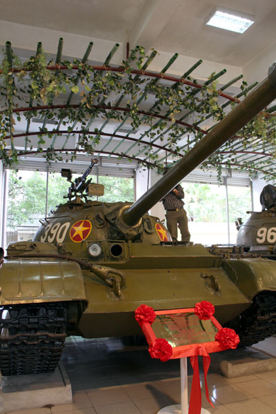 | Xe tăng 390: hiện vật gốc, độc bản đang được trưng bày tại Bảo tàng Lực lượng Tăng thiết giáp ở Hà Nội. Số tháp pháo được đúc nổi bên sườn trái là 61-T-73; dãy số khắc chìm bên cửa trái của trưởng xe là 73776. |
