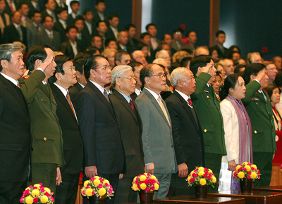 | Các đồng chí lãnh đạo Đảng, Nhà nước Lễ kỷ niệm 40 năm ngày ký Hiệp định Paris về chấm dứt chiến tranh, lập lại hòa bình ở Việt Nam - Ảnh: VGP/Nhật Bắc |