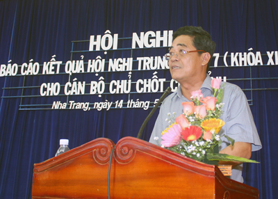 Sáng 14-5, tại Nha Trang, ông Lê Thanh Quang, Ủy viên Trung ương Đảng, Bí thư Tỉnh ủy, Chủ tịch HĐND tỉnh Khánh Hòa báo cáo kết quả Hội nghị Trung ương 7 (khóa XI) cho cán bộ chủ chốt của tỉnh.