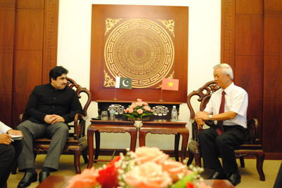 | Chủ tịch UBND tỉnh Khánh Hòa Nguyễn Chiến Thắng (bên phải) tiếp xã giao ngài Aizaz Khan- Đại biện lâm thời Đại sứ quán Pakistan tại Việt Nam. |
