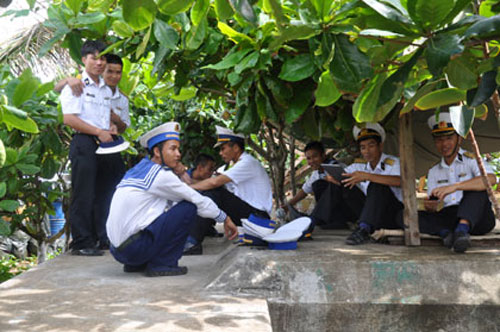 Là thành viên trẻ nhất đoàn nên Nguyễn Ngọc Diệp, du học sinh Việt Nam tại Singgapore, tỏ ra rất hòa đồng, gần gũi với các chiến sĩ, đi đến đâu em cũng tìm cách trò chuyện, tìm hiểu và giao lưu văn nghệ với các chiến sĩ trên đảo. Diệp xúc động chia sẻ điều đọng lại mãi trong em là những kỷ niệm ở trong tim, những nụ cười, những giọt nước mắt đã có trong chuyến đi này. Diệp cho biết: “Em cảm thấy rất may mắn được đứng ở đây, cảm nhận được cuộc sống của các anh ở trên đảo. Điều mà em rất cảm phục đó là sự hy sinh của các anh đối với Tổ quốc. Đảo của mình nhỏ bé nhưng là linh hồn cho cả đất nước chúng ta. Chúng em là kiều bào từ nước ngoài về đây được tận mắt chứng kiến các anh như thế này là nguồn động viên rất lớn cho chúng em khi ra nước ngoài. Chúng em sẽ phải làm điều gì đó để xứng đáng với những vất vả hy sinh của các anh”.