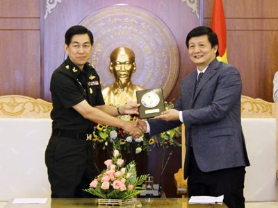 Đại tá Siravuth Wongkantee tặng quà lưu niệm cho ông Trần Sơn Hải. |