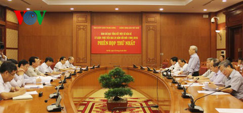 Phát biểu tại Phiên họp, Tổng Bí thư Nguyễn Phú Trọng quán triệt mục đích, yêu cầu, phạm vi, nội dung, phương pháp, cách thức làm việc. Tổng Bí thư nhấn mạnh: tổng kết một số vấn đề lý luận – thực tiễn 30 năm đổi mới là việc lớn, cần thiết, quan trọng, xuất phát từ thực tiễn đổi mới của đất nước, từ thực tiễn biến đổi của thế giới; dựa trên các quan điểm, đường lối của Đảng từ Đại hội Đảng lần thứ VI (1986) đến Đại hội Đảng lần thứ XI (2011) trên cơ sở kế thừa những kết quả, kết luận của các lần tổng kết, những kết quả nghiên cứu đã có như tổng kết 20 năm đổi mới, 20 năm thực hiện Cương lĩnh xây dựng đất nước trong thời kỳ quá độ lên chủ nghĩa xã hội (1991-2011), 20 năm thực hiện Hiến pháp 1992.