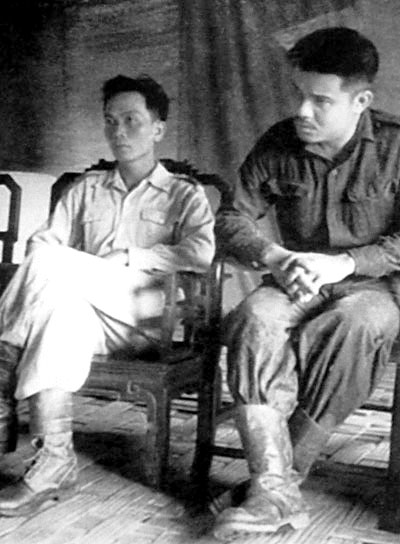 | Đại tướng Võ Nguyên Giáp (bên trái) và luật sư Phan Anh tại đình Xuân Hòa, xã Ninh Phụng, thị xã Ninh Hòa vào đầu năm 1946. |