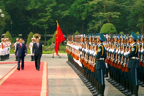 9. Trong thời gian chuyến thăm, hai bên đã ký “Hiệp định về việc mở Cơ quan Xúc tiến thương mại nước này tại nước kia”, “Bản ghi nhớ về xây dựng khu hợp tác kinh tế qua biên giới”, “Bản ghi nhớ về việc thành lập Nhóm công tác hỗn hợp hỗ trợ các dự án do doanh nghiệp Trung Quốc thực hiện tại Việt Nam”, “Hiệp định về việc xây dựng cầu đường bộ 2 Tà Lùng-Thủy Khẩu” và Nghị định thư kèm theo, “Dự án hợp tác nghiên cứu quản lý môi trường biển và hải đảo vùng vịnh Bắc Bộ”, “Dự án nghiên cứu so sánh trầm tích thời kỳ Holocenne khu vực châu thổ sông Hồng và châu thổ sông Trường Giang”, “Thỏa thuận về việc thành lập Viện Khổng Tử tại Trường Đại học Hà Nội” và một số văn kiện hợp tác kinh tế.