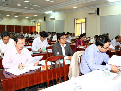 Buổi sáng, hội nghị tập trung thảo luận báo cáo tình hình kinh tế - xã hội (KT-XH) của tỉnh năm 2013 và phương hướng nhiệm vụ năm 2014.