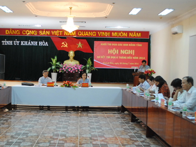 Chiều 9-7, Khối thi đua các ban đảng tỉnh Khánh Hòa sơ kết thi đua 6 tháng đầu năm 2014. bà Nguyễn Thị Kiều - Ủy viên Ban Thường vụ Tỉnh ủy, Trưởng ban Tuyên giáo Tỉnh ủy chủ trì.