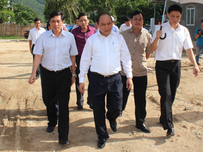 Phó Thủ tướng Nguyễn Xuân Phúc kiểm tra công tác giải phóng mặt bằng khu tái định cư Suối Hiệp (Diên Khánh, Khánh Hòa). |