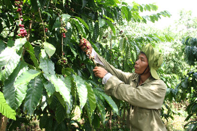 | Anh Cao Giêng chăm sóc cây cà phê. |