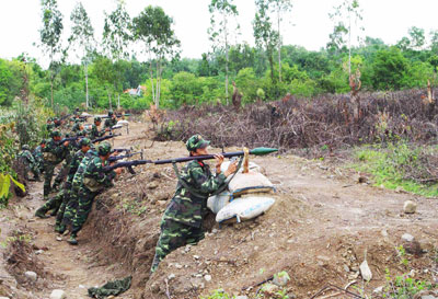 | Lực lượng dự bị động viên thị xã Ninh Hòa diễn tập nâng cao khả năng sẵn sàng chiến đấu. |