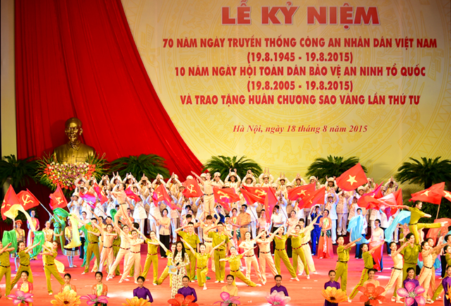 Trong không khí tưng bừng kỉ niệm Cách mạng tháng Tám, Quốc khánh 2/9, ngày 18/8, tại Hà Nội, Ban Chấp hành Trung ương Đảng, Quốc hội, Chủ tịch nước, Chính phủ, Ủy ban Trung ương MTTQ Việt Nam, Đảng ủy Công an Trung ương và Bộ Công an tổ chức trọng thể Lễ kỷ niệm 70 năm Ngày truyền thống CAND Việt Nam (19/8/1945- 19/8/2015), 10 năm Ngày hội toàn dân bảo vệ an ninh Tổ quốc (2005-2015).
