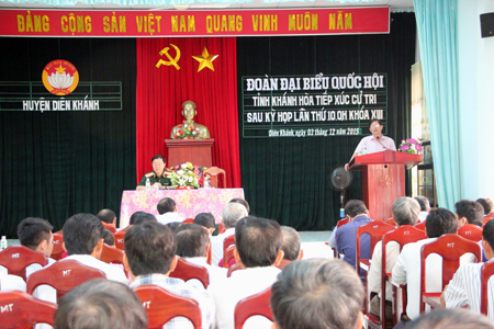 Ngày 3-12, Thượng tướng Lê Hữu Đức - Ủy viên Trung ương Đảng, Thứ trưởng Bộ Quốc phòng và ông Nguyễn Tấn Tuân - Phó Bí thư Thường trực Tỉnh ủy, Trưởng đoàn Đại biểu Quốc hội tỉnh Khánh Hòa tiếp xúc cử tri huyện Diên Khánh.