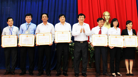 Dịp này, UBND tỉnh tặng bằng khen cho 12 tập thể có thành tích xuất sắc trong triển khai công tác khai thuế qua mạng và nộp thuế điện tử.