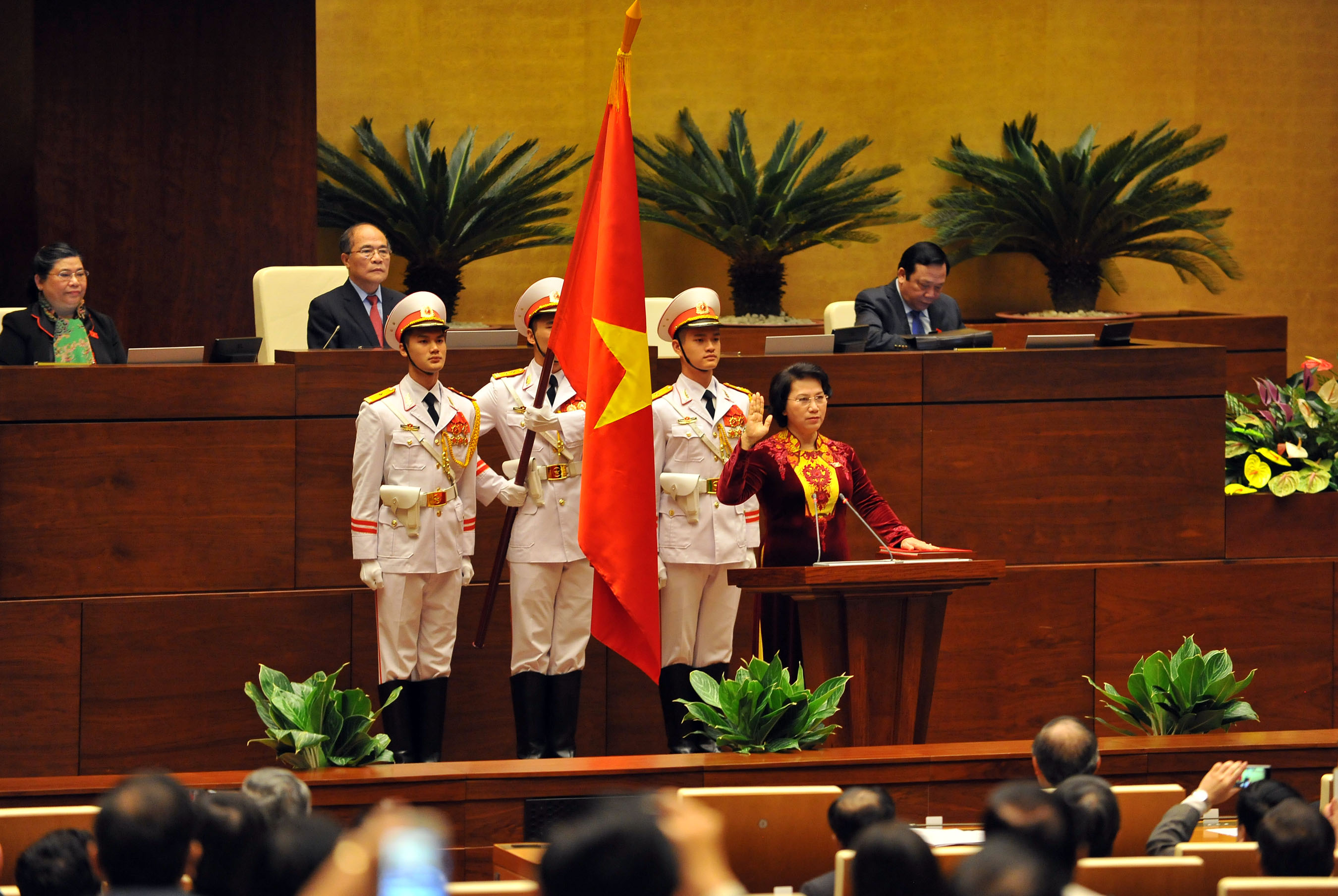 | Tân Chủ tịch Quốc hội Nguyễn Thị Kim Ngân tuyên thệ nhậm chức. Ảnh VGP/Nhật Bắc |