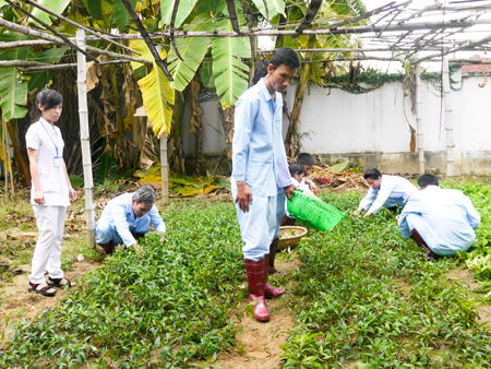 | Nhân viên bệnh viện hướng dẫn bệnh nhân trồng rau |
