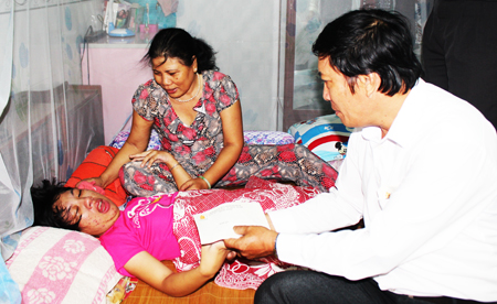 Tại những nơi đến thăm, đoàn ân cần thăm hỏi sức khỏe, đời sống và động viên các gia đình nỗ lực vượt qua khó khăn để vươn lên trong cuộc sống. Nhân dịp này, đoàn đã trao tặng cho mỗi gia đình nạn nhân một suất quà trị giá hơn 500.000 đồng.