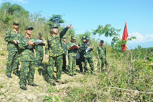Đoàn công tác kiểm tra địa hình khu vực diễn tập. |