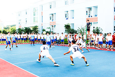 Cán bộ, chiến sĩ Lữ đoàn 189 Hải quân luyện tập thể thao, rèn luyện thể lực. |