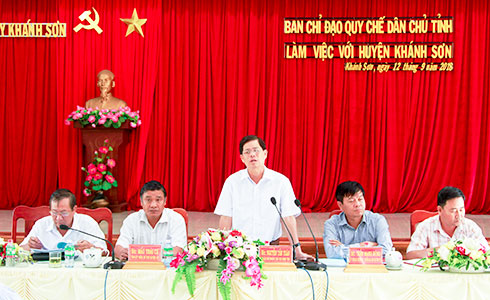 Ngày 12-9, ông Nguyễn Tấn Tuân - Phó Bí thư Thường trực Tỉnh ủy, Chủ tịch HĐND tỉnh cùng các ông trong Ban Chỉ đạo thực hiện quy chế dân chủ cơ sở tỉnh làm việc với huyện Khánh Sơn.