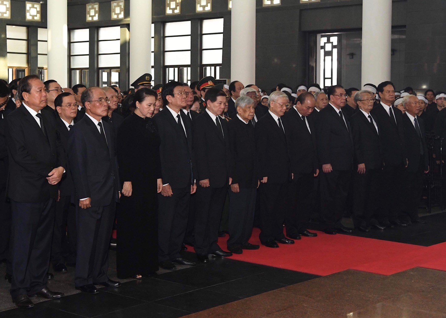 Trong niềm tiếc thương vô hạn, Đoàn Ban Chấp hành Trung ương Đảng do Tổng Bí thư Nguyễn Phú Trọng dẫn đầu vào viếng đồng chí Trần Đại Quang.