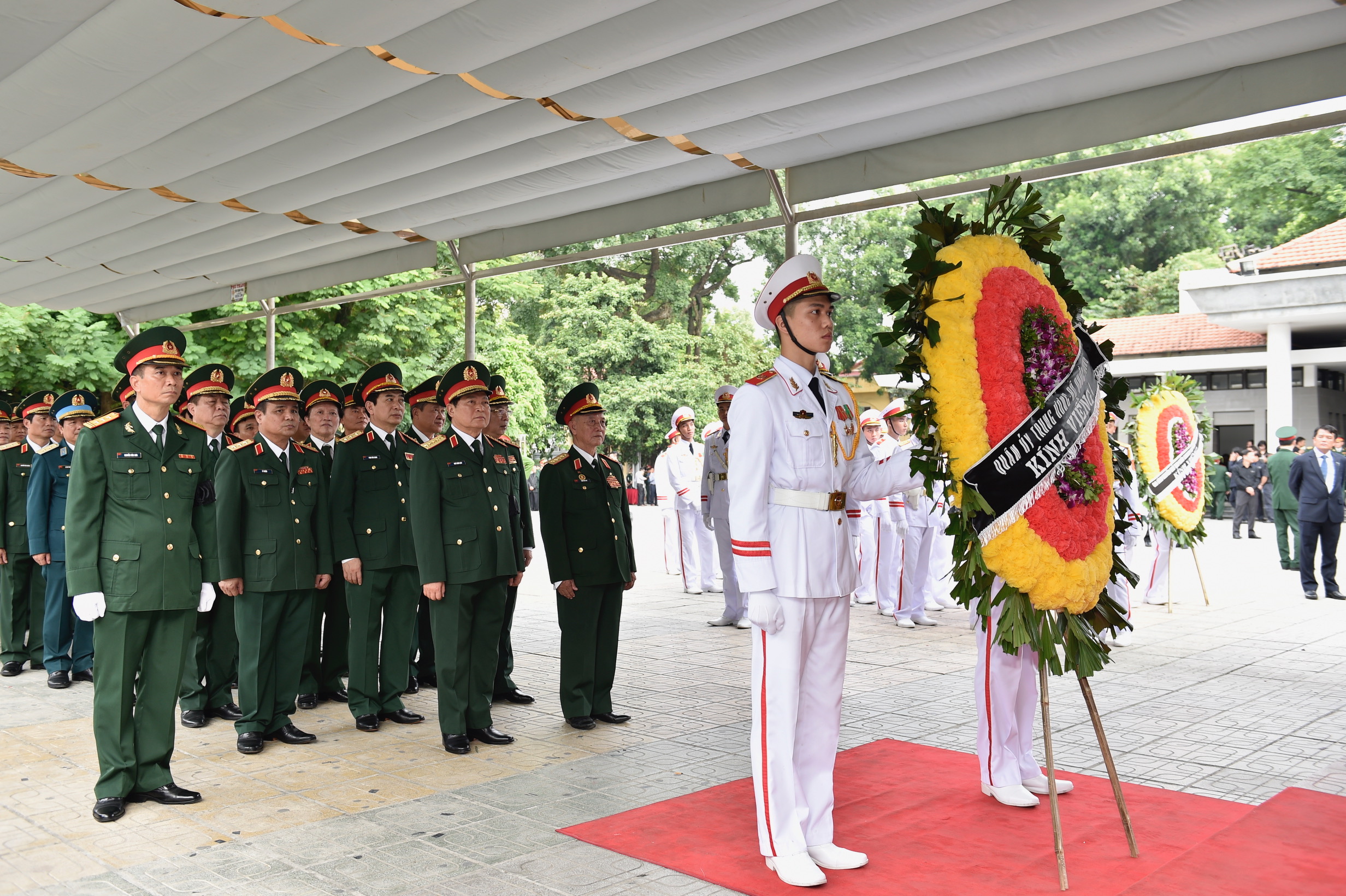 Tiếp đó là đoàn Quân ủy Trung ương, Bộ Quốc phòng do đại tướng Ngô Xuân Lịch, Bộ trưởng Quốc phòng làm trưởng đoàn vào viếng.