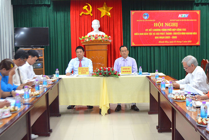 Tại hội nghị, các bên đã thảo luận và thông qua Chương trình phối hợp công tác giữa Ban Dân tộc và Đài Phát thanh và Truyền hình Khánh Hòa; kế hoạch thực hiện Chương trình phối hợp công tác giữa Ban Dân tộc và Đài Phát thanh và Truyền hình Khánh Hòa năm 2022. Theo đó, nội dung chương trình phối hợp công tác tuyên truyền về Chương trình mục tiêu quốc gia phát triển kinh tế - xã hội vùng đồng bào dân tộc thiểu số (DTTS) và miền núi giai đoạn 2021 - 2025, tập trung ở một số nội dung như: Ban Dân tộc tỉnh cung cấp thông tin cho Đài Phát thanh và Truyền hình Khánh Hòa về đường lối, chủ trương của Đảng, chính sách pháp luật của Nhà nước về công tác dân tộc; các thành tựu đạt được về công tác dân tộc và thực hiện chính sách dân tộc tại vùng đồng bào DTTS và miền núi; xây dựng các hoạt động tuyên truyền, các chuyên trang, chuyên đề cụ thể; tuyên truyền biểu dương người tốt việc tốt, gương điển hình tiên tiến trong vùng đồng bào DTTS và miền núi…. Riêng năm 2022, các bên thống nhất phối hợp triển khai thực hiện một số nội dung cơ bản như: tuyên truyền, phổ biến chủ trương, đường lối của Đảng, chính sách, pháp luật của Nhà nước về công tác dân tộc và thực hiện chính sách dân tộc trên địa bàn tỉnh; tuyên truyền về Chương trình mục tiêu quốc gia phát triển kinh tế - xã hội vùng đồng bào dân tộc thiểu số và miền núi giai đoạn 2021 - 2025...