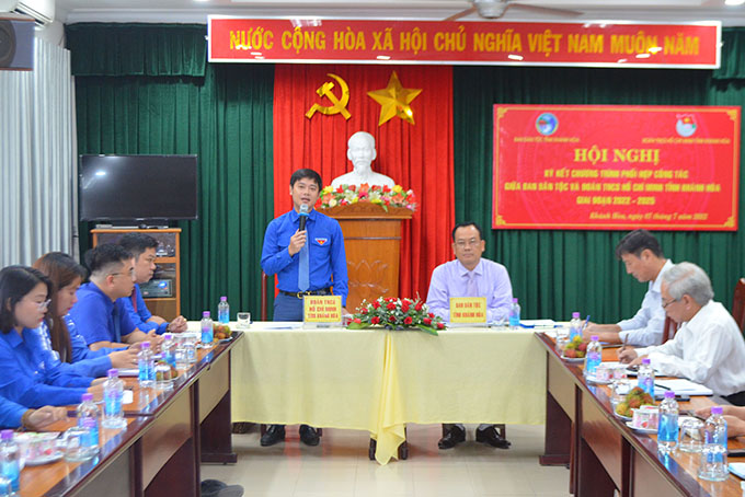Sáng 7-7, Ban Dân tộc tỉnh Khánh Hòa tổ chức Hội nghị ký kết chương trình phối hợp công tác giữa Ban Dân tộc tỉnh và Đoàn TNCS Hồ Chí Minh tỉnh giai đoạn 2022 - 2025.