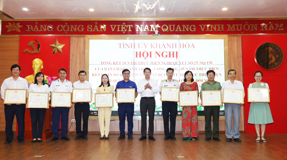 Sáng 25-8, Ban Thường vụ Tỉnh ủy Khánh Hòa tổ chức hội nghị tổng kết 10 năm thực hiện Nghị quyết số 25/2013 của Ban Chấp hành Trung ương Đảng khóa XI và 5 năm thực hiện Kết luận số 43/2019 của Ban Bí thư về tiếp tục thực hiện Nghị quyết số 25 về “Tăng cường và đổi mới sự lãnh đạo của Đảng đối với công tác dân vận trong tình hình mới”. Các ông: Nguyễn Khắc Toàn - Phó Bí thư Thường trực Tỉnh ủy, Chủ tịch HĐND tỉnh; Đinh Văn Thiệu - Phó Chủ tịch UBND tỉnh chủ trì hội nghị. Dự hội nghị còn có bà Phạm Thị Xuân Trang - Phó Chủ tịch HĐND tỉnh.