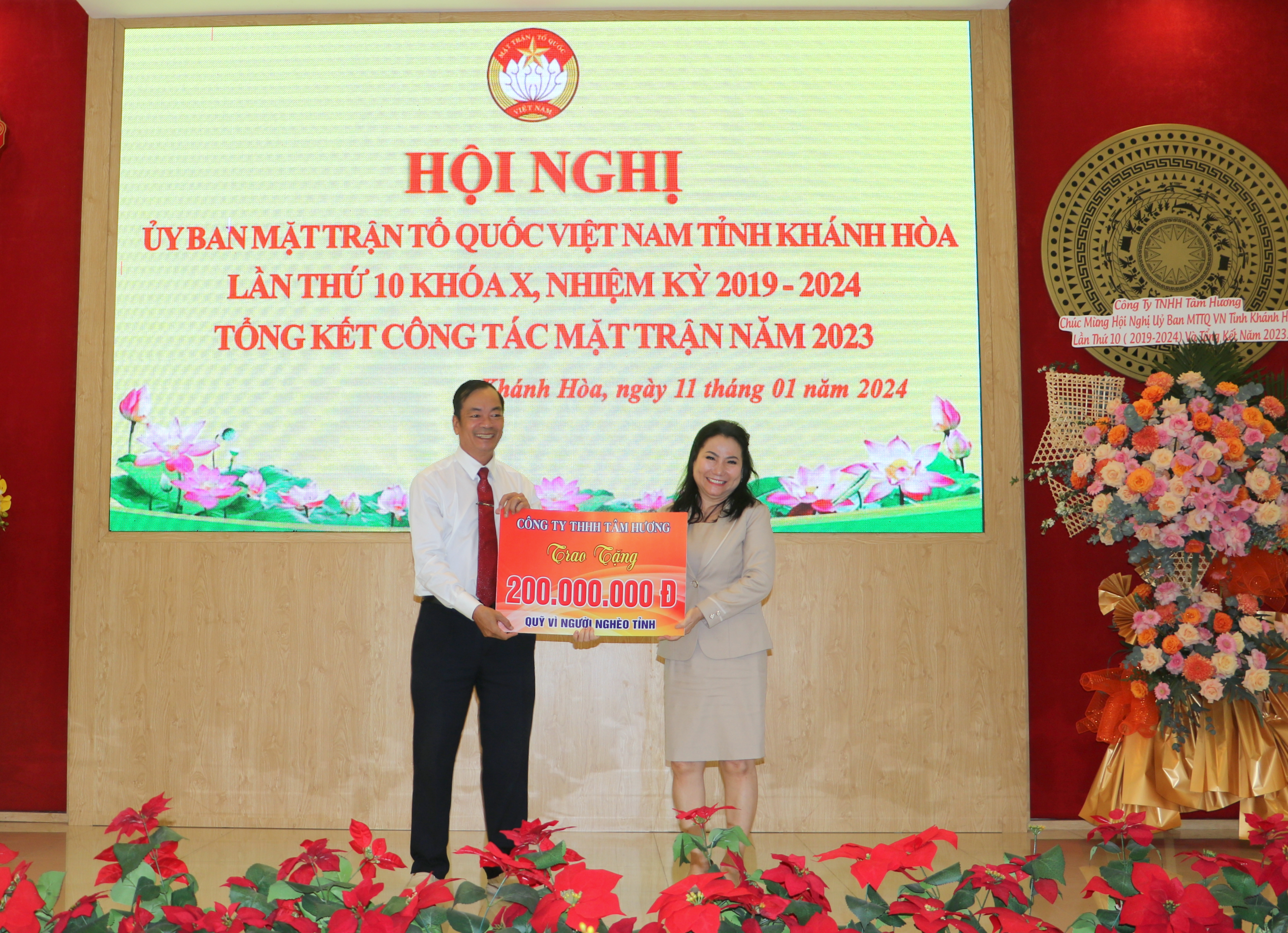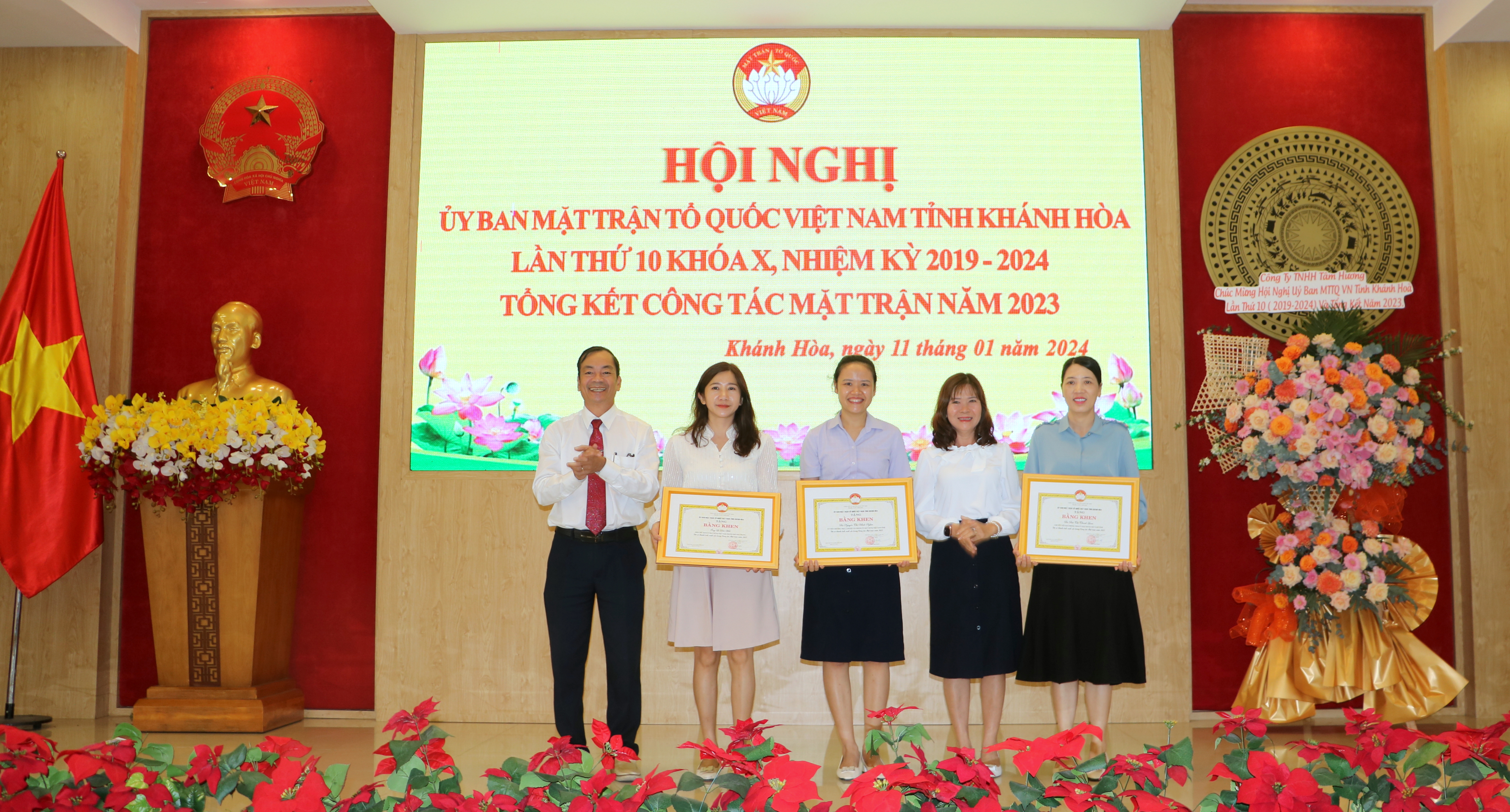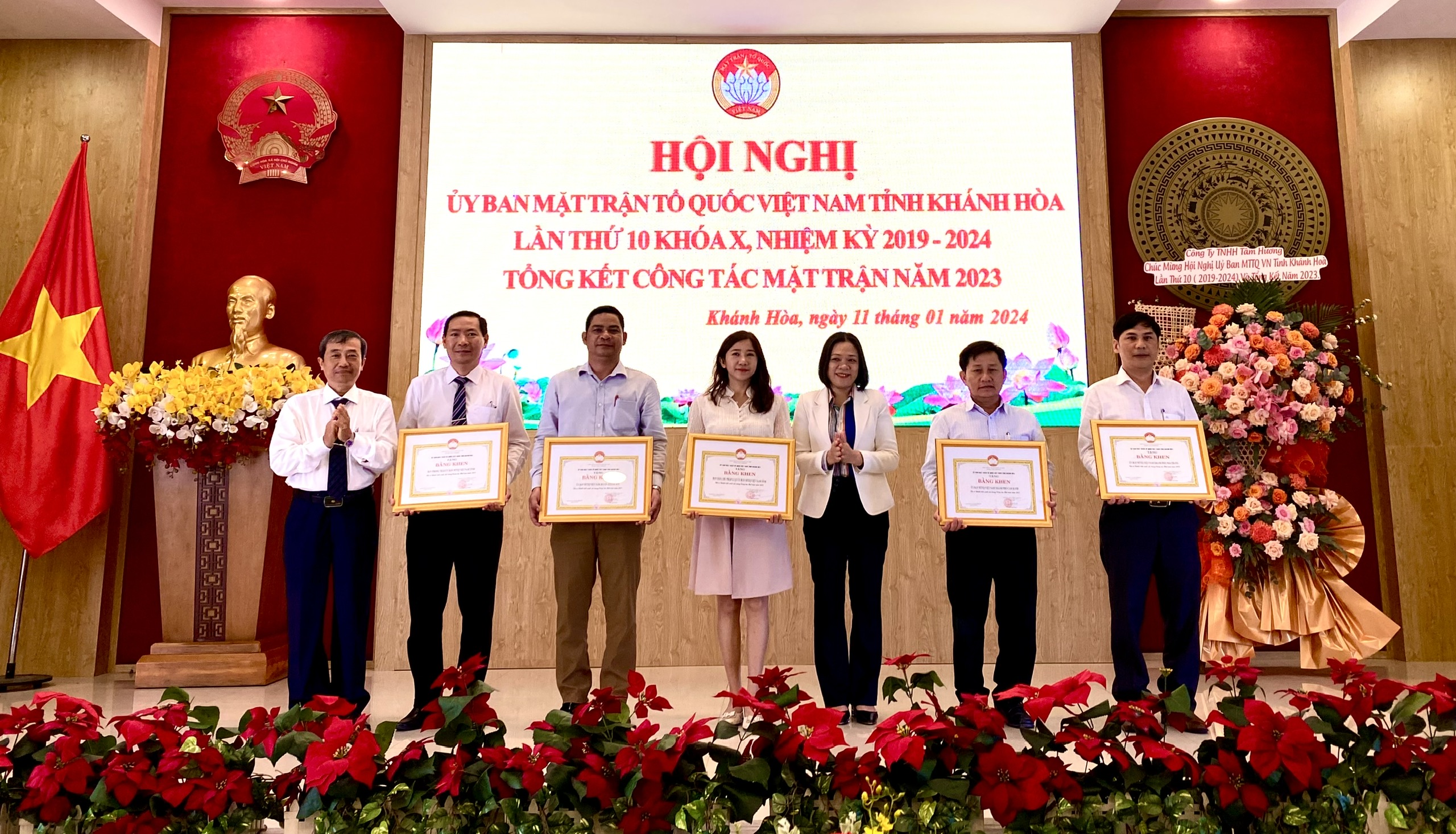 Nhân dịp này, UBMTTQ Việt Nam tỉnh tặng Cờ xuất sắc toàn diện cho UBMTTQ Việt Nam huyện Diên Khánh; tặng Cờ xuất sắc cho UBMTTQ Việt Nam thị xã Ninh Hòa; tặng bằng khen cho 31 tập thể và 18 cá nhân có thành tích xuất sắc trong công tác Mặt trận năm 2023. Công ty TNHH Tâm Hương ủng hộ Quỹ “Vì người nghèo” tỉnh 200 triệu đồng.
